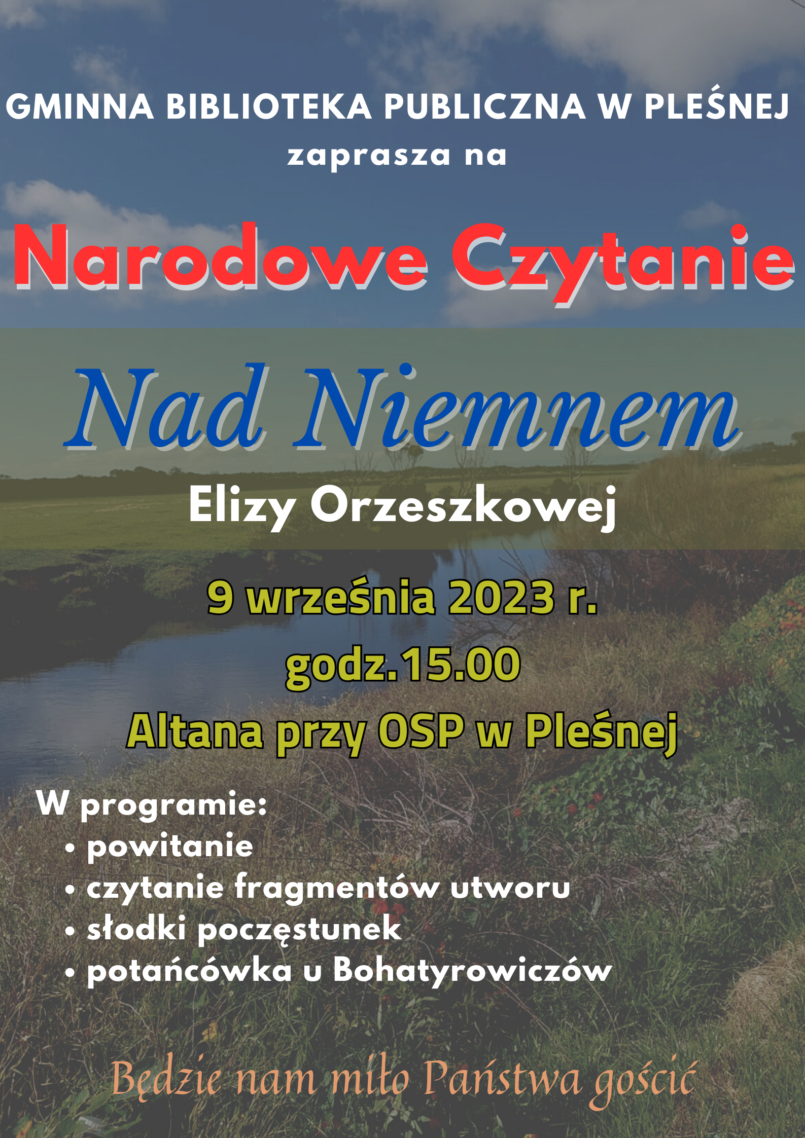 serdecznie zaprasza 9 września 2023 r . do wysłuchania  fragmentów „Nad Niemnem” Elizy Orzeszkowej