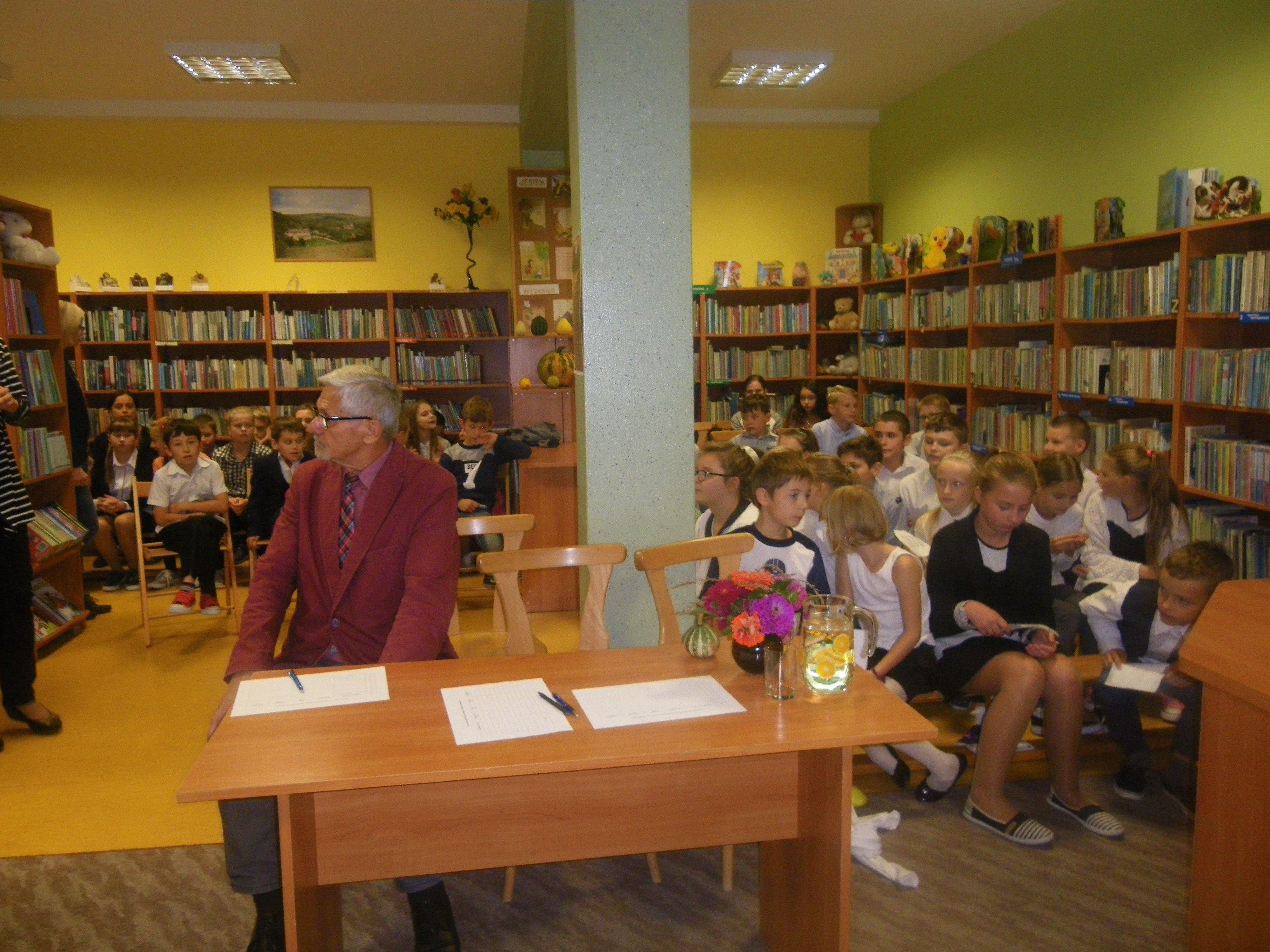 Dnia 23 września 2016 Biblioteka Publiczna gościła poetę pana Kazimierza Burnata. Kazimierz Burnat urodził się w Szczepanowicach, obecnie mieszka we Wrocławiu, jest nie tylko poetą , ale także publicystą, dziennikarzem, byłym żołnierzem „Czerwonych beretów”, a także prekursorem harcerstwa w zakładach poprawczych. Wydał kilka tomików wierszy, które zostały przetłumaczone na ponad 40 języków. W bibliotece poeta spotkał się z dziećmi,  odpowiadał na zadawane przez nie  pytania, a następnie odbył się konkurs poetycki „Wrześniowe poezjowanie”. Zwycięzcami konkursu zostali : Krystian Szczurek , Pytel Justyna i Kinga Radlińska. Gratulujemy zwycięzcom , a panu Kazimierzowi dziękujemy za spotkanie.